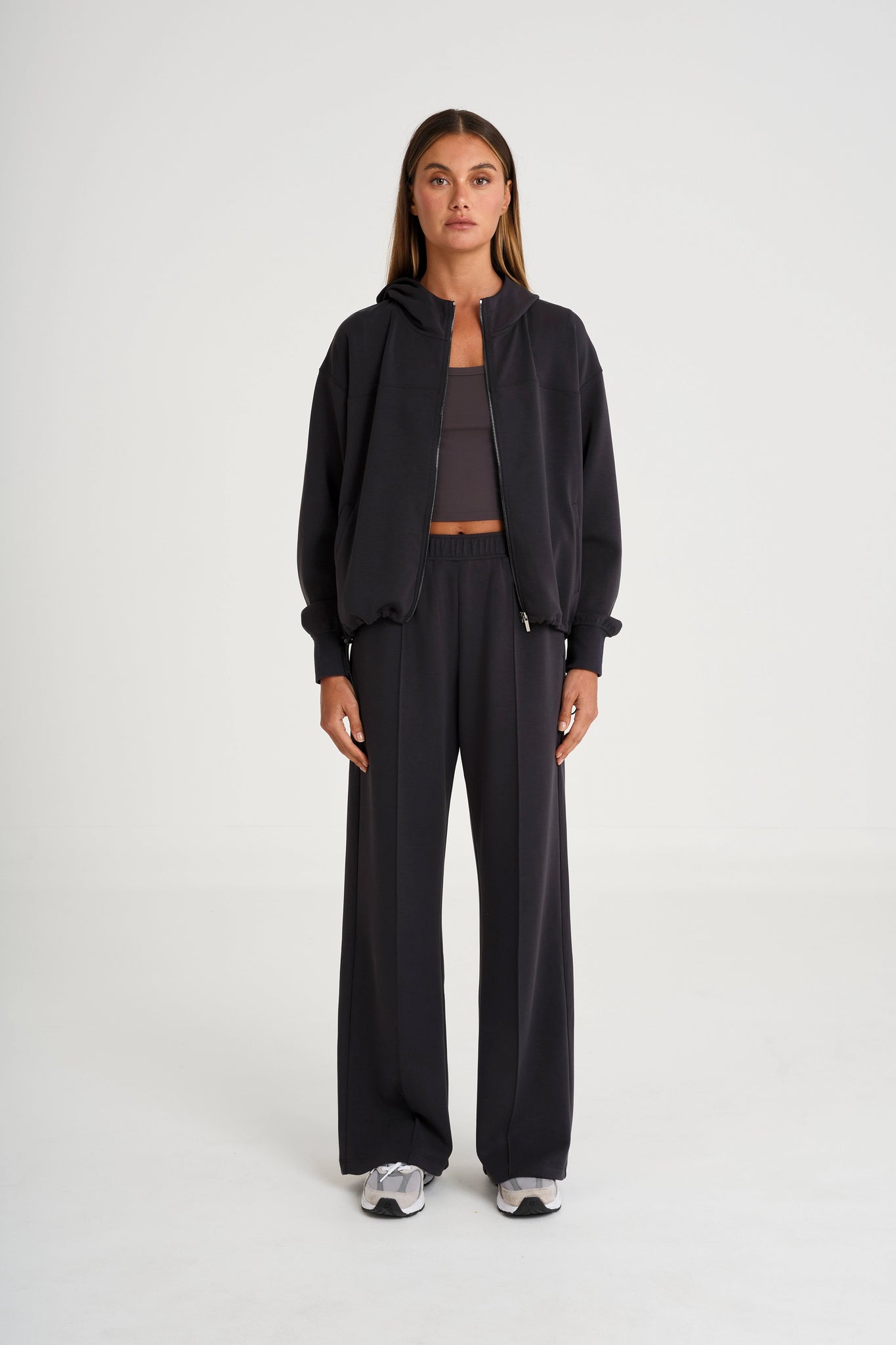 This is not your average hoodie. Made from our irresistibly soft Soft Luxury fabric, the Full Zip Hoodie is designed to feel like comfort but look luxurious. It’s relaxed where it matters, with subtle style details like a 3-piece hood for structure, adjustable toggles at the hem for a custom fit, and discreet side pockets for your essentials. Throw it on after Pilates, for your next long-haul flight, or any day you want to feel put-together without trying.