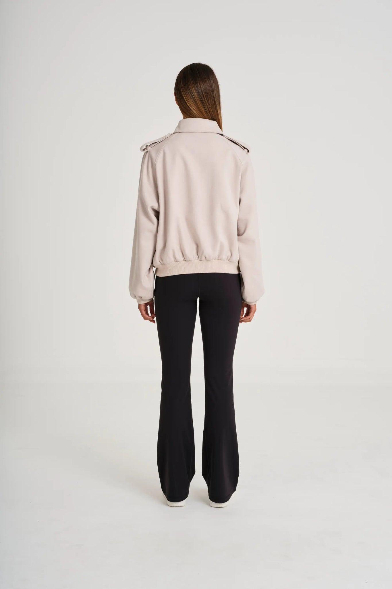The ALLFENIX Bomber Jacket is your off-duty statement layer: cropped, oversized, and effortlessly structured. Designed with a soft-yet-sturdy drape, it features trench-inspired epaulettes, a sleek coach collar, and gunmetal YKK zip for a polished finish. Ribbed cuffs and hem add comfort and shape, while raglan sleeves ensure easy layering from Pilates to post-class plans. Fully lined in silky poly-satin for that subtle luxe touch, this is your everyday essential, built to throw on and own the day.