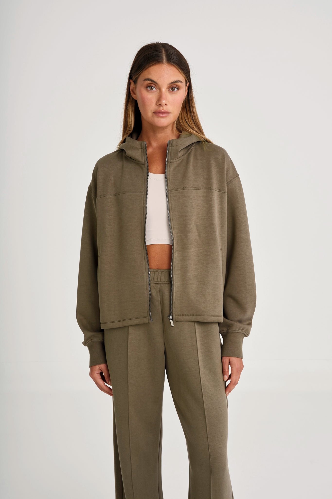 This is not your average hoodie. Made from our irresistibly soft Soft Luxury fabric, the Full Zip Hoodie is designed to feel like comfort but look luxurious. It’s relaxed where it matters, with subtle style details like a 3-piece hood for structure, adjustable toggles at the hem for a custom fit, and discreet side pockets for your essentials. Throw it on after Pilates, for your next long-haul flight, or any day you want to feel put-together without trying.