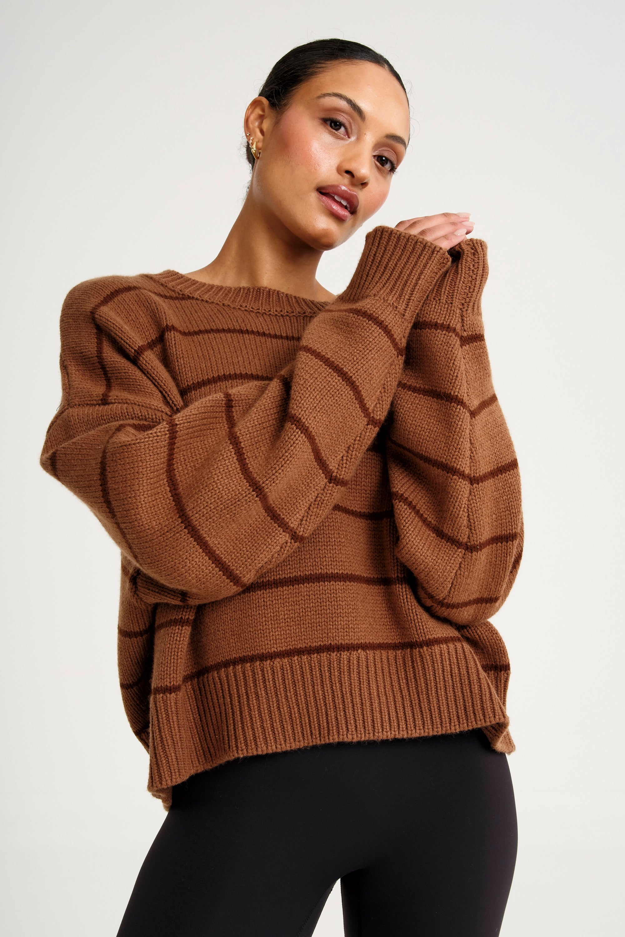 The ALLFENIX Stripe Cropped Knit combines a relaxed, slightly cropped silhouette with a clean crew neckline and classic drop shoulders. Knitted in a soft, mid-weight yarn, it delivers warmth without the weight, perfect for layering on studio days or slow Sundays. Wide ribbed trims give structure, while the subtle stripe detail adds just enough edge. Style it solo or throw it over your active set, it's knitwear that looks as good as it feels.