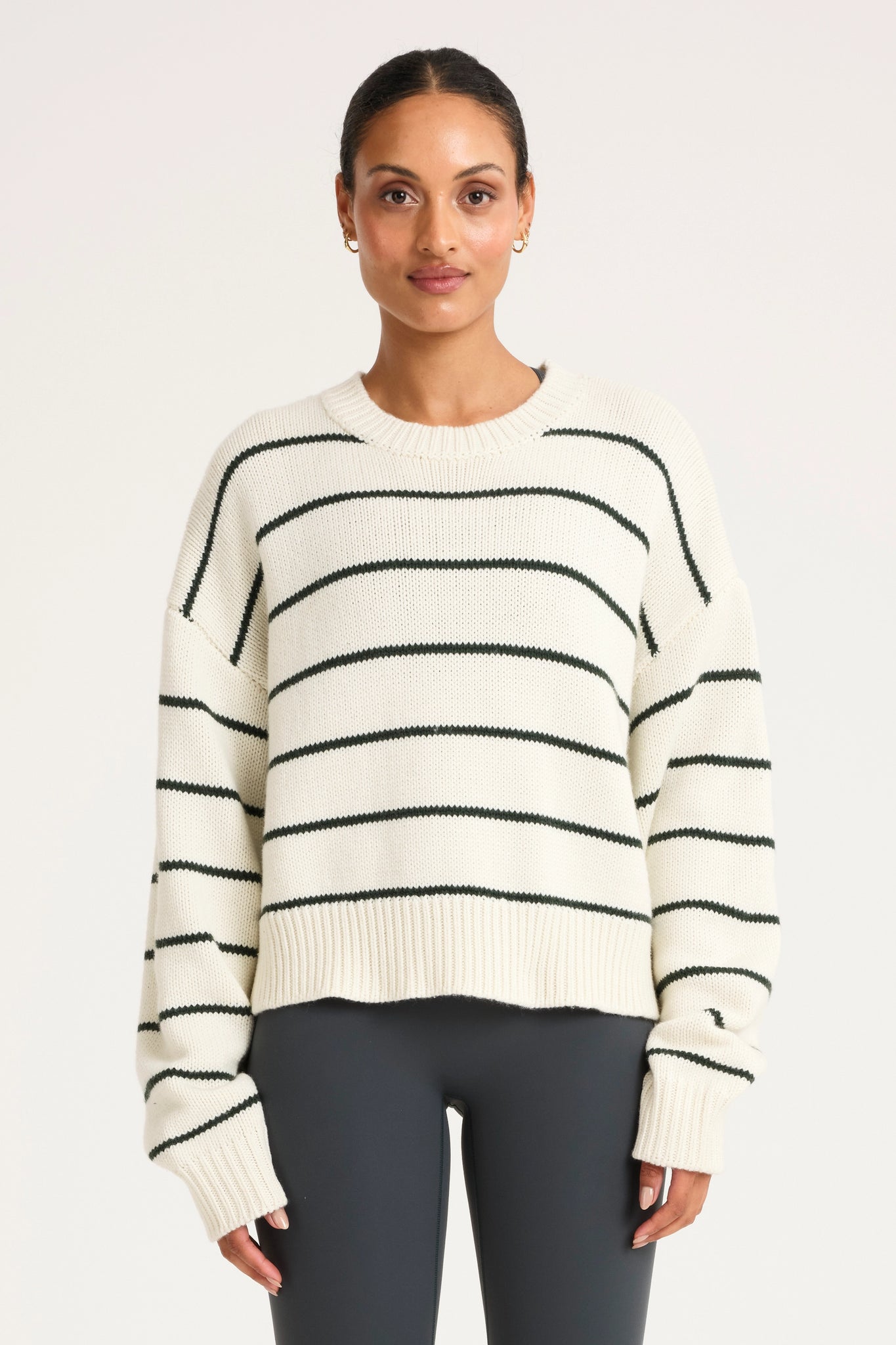 The ALLFENIX Stripe Cropped Knit combines a relaxed, slightly cropped silhouette with a clean crew neckline and classic drop shoulders. Knitted in a soft, mid-weight yarn, it delivers warmth without the weight, perfect for layering on studio days or slow Sundays. Wide ribbed trims give structure, while the subtle stripe detail adds just enough edge. Style it solo or throw it over your active set, it’s knitwear that looks as good as it feels.